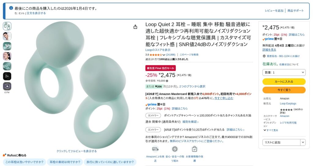 Loop Quiet 2は、誰かと一緒に寝ている人にとって、今のところ最もコスパが良い選択肢の一つだ。